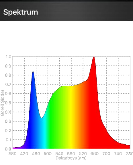Işık seviyesi %0-100 arasında ve %1 adımlarla ayarlanabilmektedir. Lambanın verdiği en yüksek PPF değeri ise 1815 μmol/j olarak ölçülmüştür.